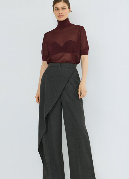 Широкие брюки с асимметричной деталью, Серый