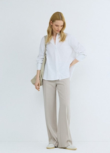 Прямые брюки с эластичным поясом, Бежевый