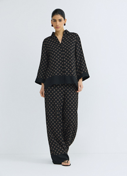 Прямые брюки с принтом, Черный