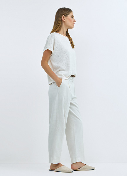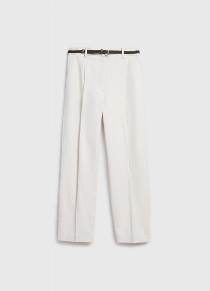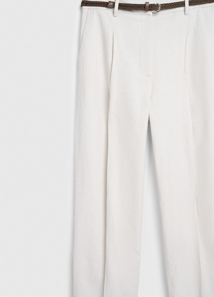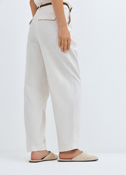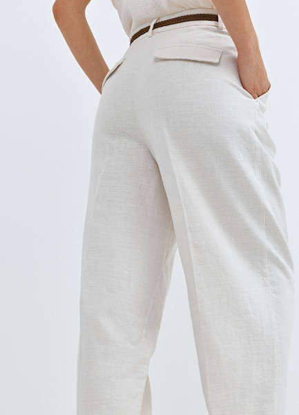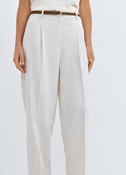 Зауженные брюки с поясом, Белый