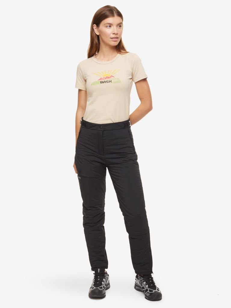 Тёплые женские брюки на синтетическом утеплителе Sh Sport® из прочной и лёгкой эластичной ткани. Брюки подходят для зимних видов спорта и прогулок. Два боковых кармана на молнии, удобный карман на бедре. Пояс с эластичной вставкой сзади и шлёвками под ремень. Объём талии регулируется оригинальной системой утяжки на поясе. Разрезы на молнии и усиления из Cordura® по низу брюк. Регулировка объёма низа осуществляется эластичным шнуром с зажимом.
