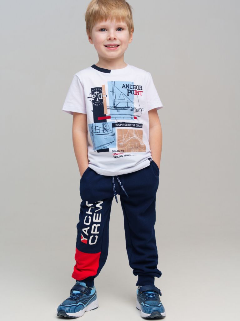 Брюки детские для мальчика. Штаны на резинке со шнурком. Высокое содержание хлопка. Удобные боковые карманы. Трикотажные манжеты. Модель выполнена из качественного и приятного на ощупь трикотажа.
