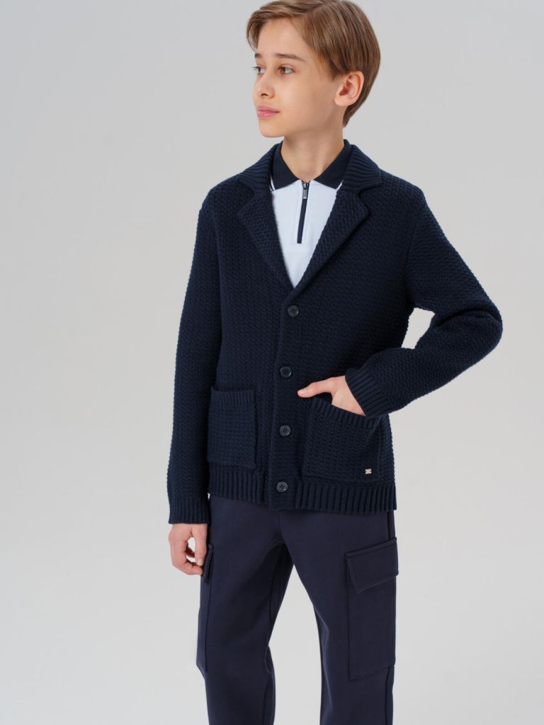 Классический тёмно-синий школьный вязаный кардиган на пуговицах для мальчика подростка от PlayToday — универсальная кофта для школы и повседневной носки, которая понравится современным подросткам. Модель выполнена в базовом классическом силуэте: прямой крой обеспечивает свободу движений и всегда актуальный внешний вид.