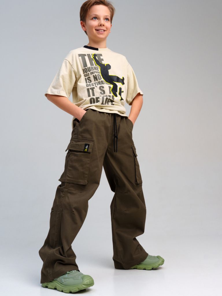 Брюки-карго для мальчика подростка. Штаны на резинке со шнурком. RELAXED FIT - свободный крой. Высокая посадка. Высокое содержание хлопка. Удобные боковые и накладные карманы. Можно составить family look cо взрослым вариантом брюк аналогичного дизайна. Модель выполнена из качественного и плотного текстиля.