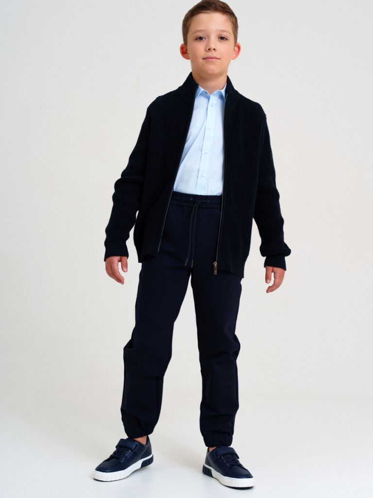 Школьные трикотажные синие брюки джоггеры для мальчика подростка от PlayToday — идеальный выбор для учебных будней. Модель сочетает в себе строгий внешний вид и комфорт спортивных стильных брюк. В таких классических подростковых штанах удобно весь день — на уроках, переменах и прогулках.
