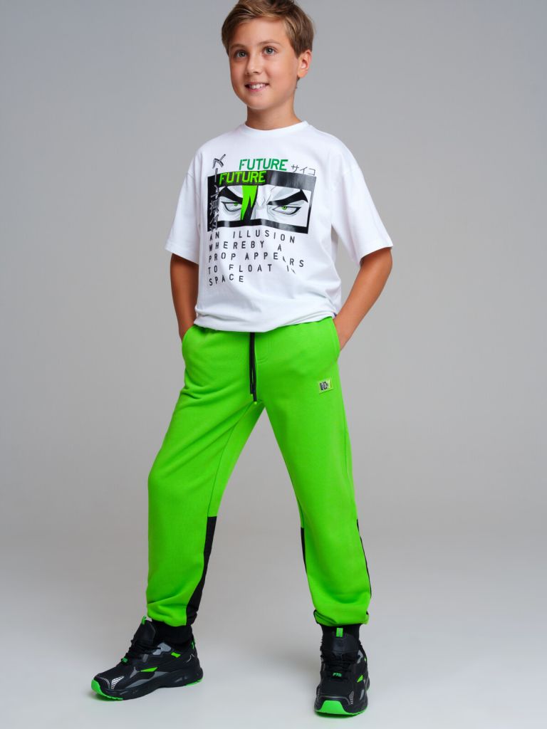 Брюки из футера без начеса для мальчика подростка. Модные штаны на резинке со шнурком. Высокое содержание хлопка. Удобные боковые карманы. Модель из капсульной коллекции B’LUCKY CITY. Соберите полный образ в едином стиле! Модель выполнена из качественного и приятного на ощупь трикотажа.