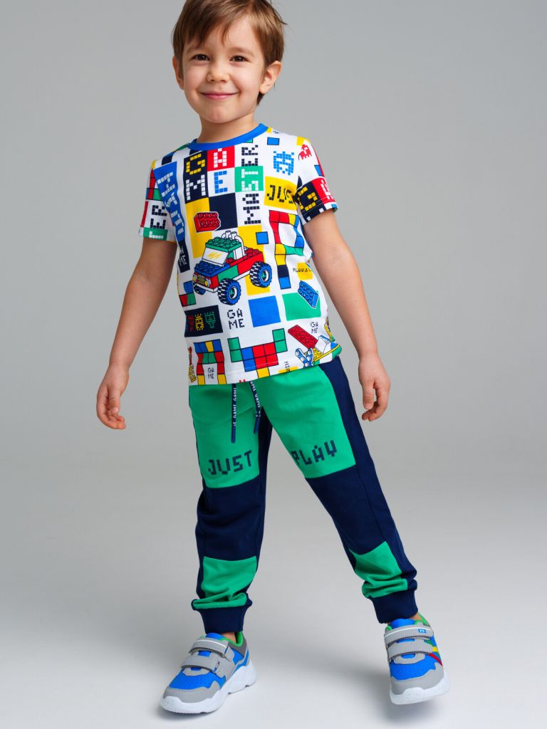 Брюки из натурального трикотажа. Брюки спортивного кроя на резинке со слегка зауженным силуэтом от колена. Функциональные карманы. Высокое содержание хлопка 95%. Благодаря наличию эластана в составе ткани изделие проще в уходе и держит форму. Модные брюки для мальчика подходят для любого повседневного случая: на прогулку, в детский сад, на день рождения.