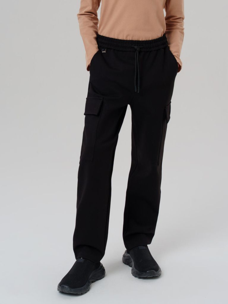 Практичный черный цвет и аккуратный крой делают модель подходящей как для школьной формы, так и для повседневной носки. Продуманные детали — шнурок, пояс-резинка, карманы — добавляют функциональности и удобства.