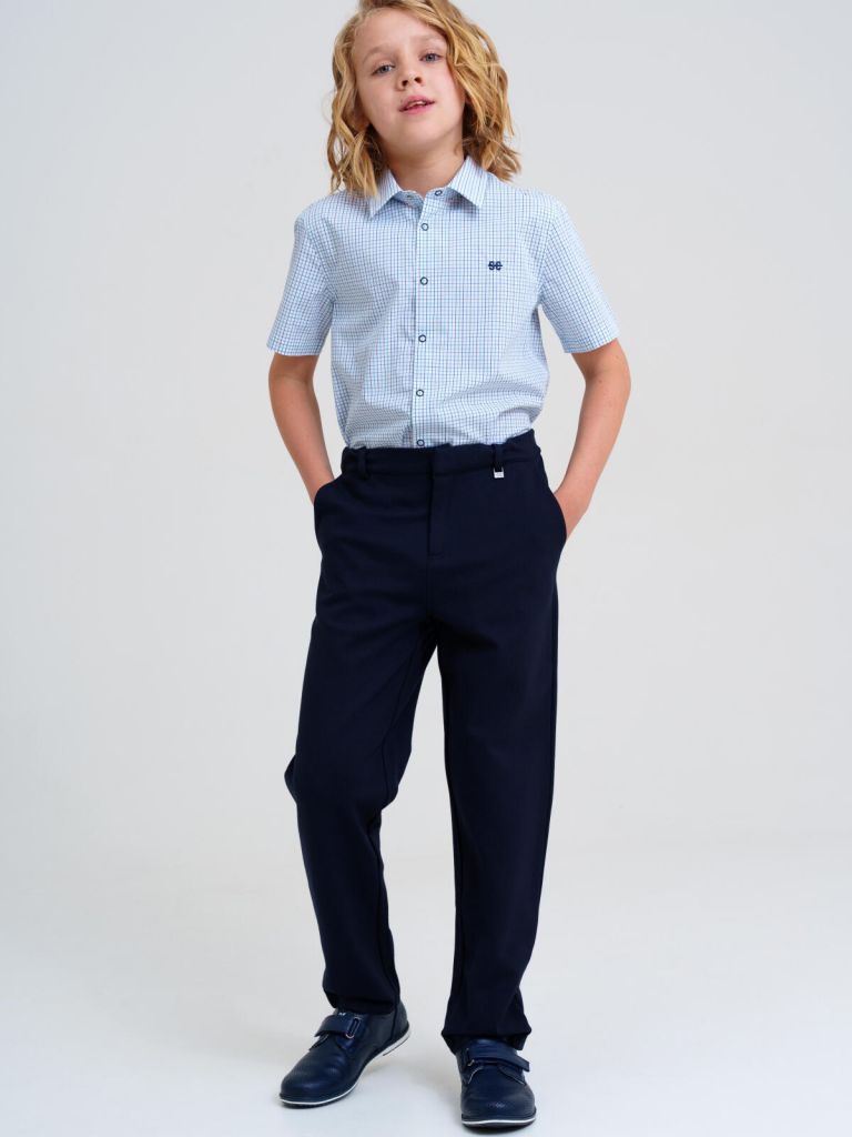 Классические трикотажные школьные темно-синие брюки для мальчика подростка от PlayToday — удачный выбор для повседневных школьных будней и особенных событий. Комфортный крой, продуманная посадка и дышащий материал делают модель практичной и универсальной.