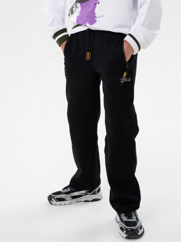 Модные чёрные спортивные брюки для мальчика подростка от PlayToday — универсальная вещь на каждый день.