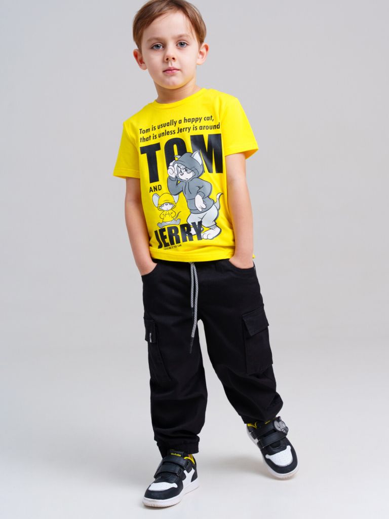 Брюки детские для мальчика. JOGGER FIT - спортивный крой. Средняя посадка. Штаны на резинке со шнурком. Накладные карго-карманы.