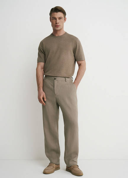 Брюки изо льна, Бежевый