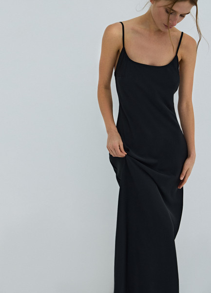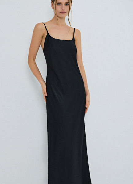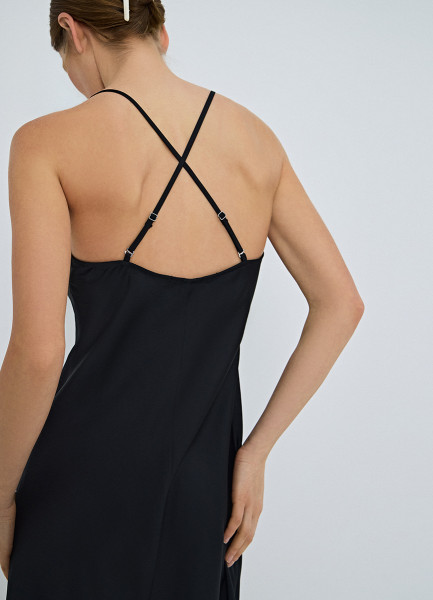 Платье на тонких бретелях, Черный