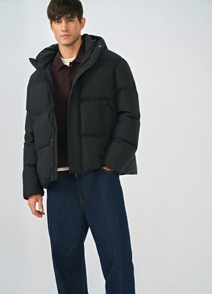 Основная ткань: 100% Полиэстер; Подкл: 100% Нейлон; Утеплитель: 70% Пух утиный серый, 30% Перо утиное серое; Утеплитель Капюшона: 100% Полиэстер