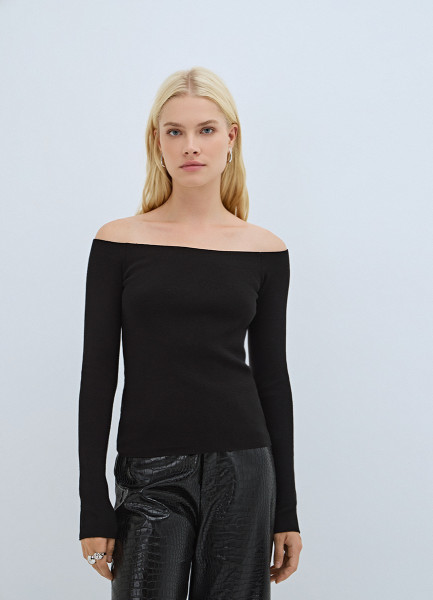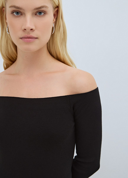 Лонгслив с открытыми плечами, Черный