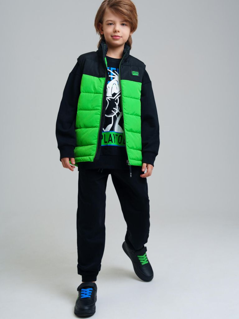 Жилетка для мальчика подростка.Температурный режим до +10°С*. Линия температурного режима X-LIGHT. Идеально подходит для весны и теплой осени. Материал верха с ветрозащитным и водоотталкивающим покрытием. Внутренняя ветрозащитная планка. Два боковых кармана на молнии. Гладкая подкладка таффета. Светоотражающие элементы. *Пожалуйста, обратите внимание, что указанный температурный режим является приблизительным и зависит от многих факторов, таких, как возраст, физическое состояние, уровень активности ребенка и количество слоев одежды. Время, проведенное на открытом воздухе, и погодные условия, такие как холодный ветер, могут повлиять на тепловые характеристики изделия. Убедитесь, что защищены от холода голова, руки и ноги.
