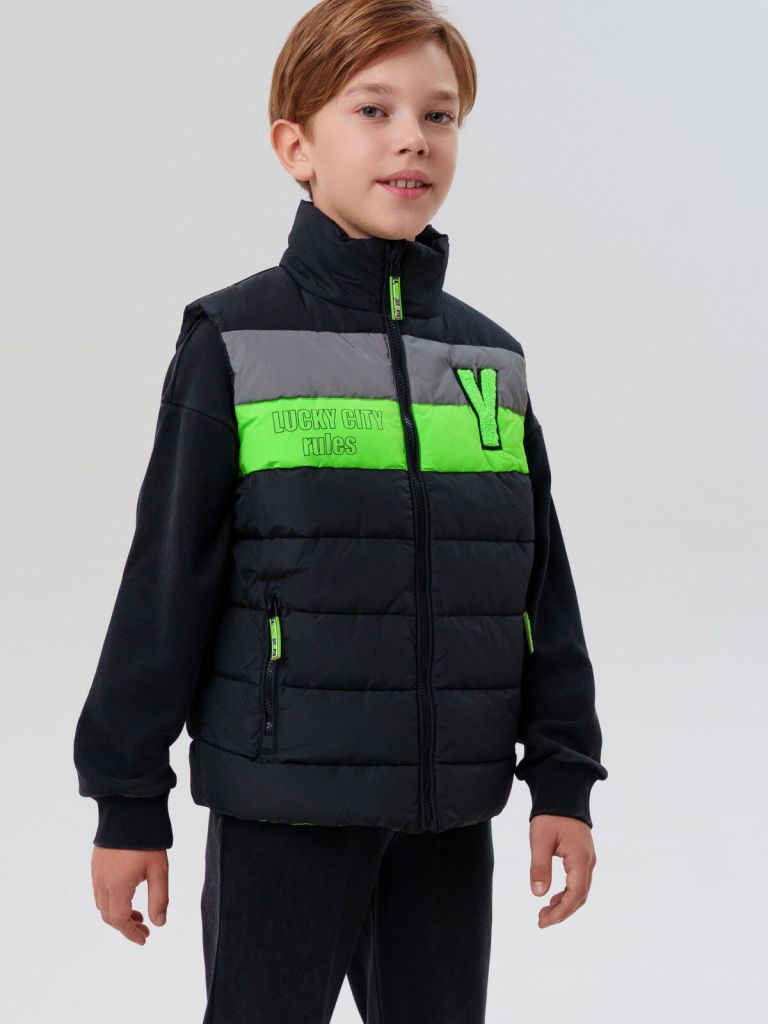 Жилет утепленный для мальчика подростка. Температурный режим до 15°С*. Линия DEMI - оптимальный вариант для переменчивой осенней и весенней погоды. Модная подростковая жилетка с ветрозащитным и водоотталкивающим покрытием. Гладкая подкладка максимально комфортна для надевания изделия. Внутренняя ветрозащитная планка c дополнительной лентой для легкого застегивания молнии. Два боковых кармана на молнии. Внутренний карман на липучке. Светоотражающие элементы. Жилетка (осень) будет актуальна в школу, а также для повседневных прогулок.