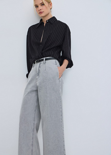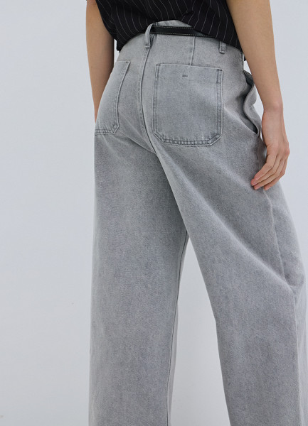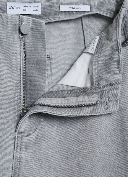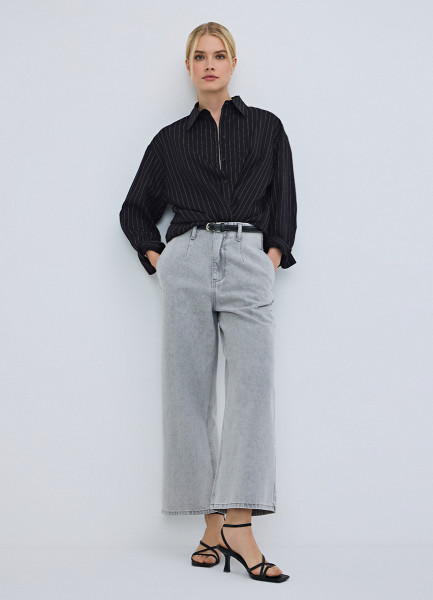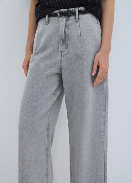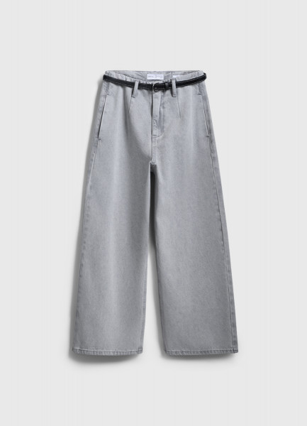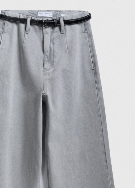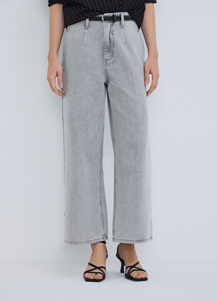 Широкие укороченные джинсы с ремнём, Серый
