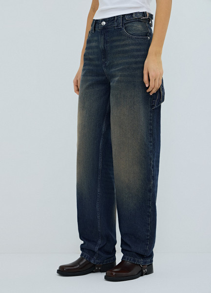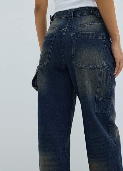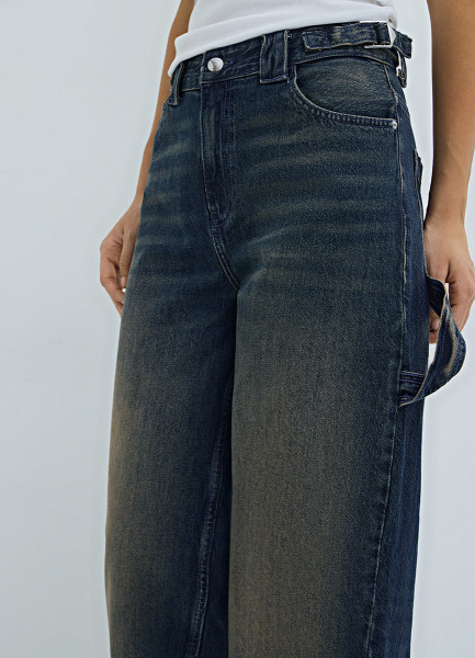 Широкие джинсы Wide leg с высокой посадкой, Синий