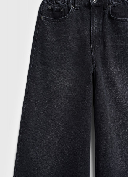 Утеплённые широкие джинсы с эффектом стирки для девочек, Серый