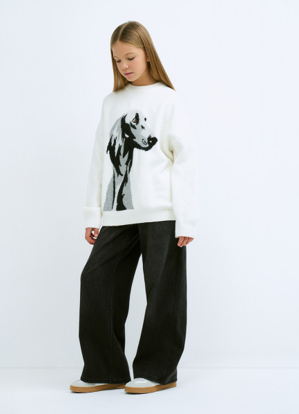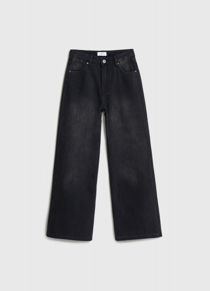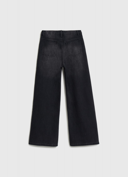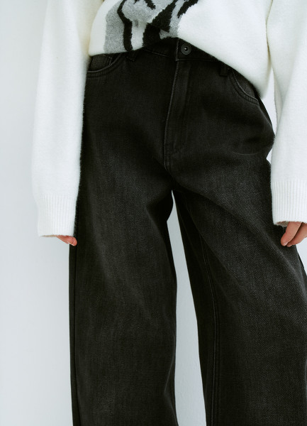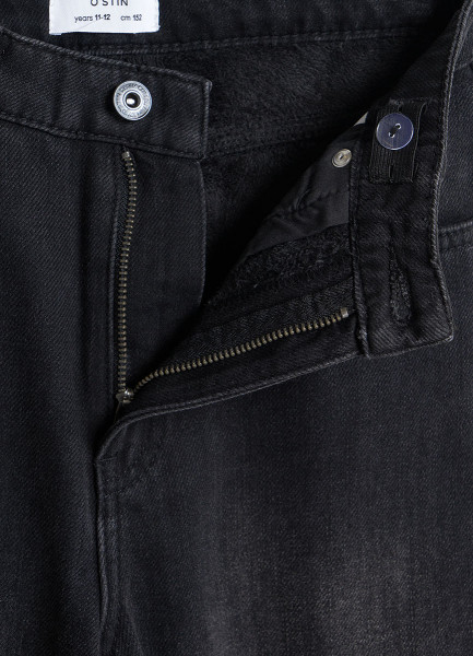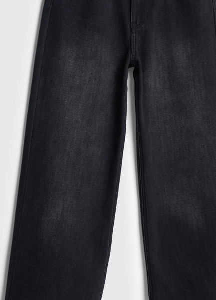 Утеплённые широкие джинсы с эффектом стирки для девочек, Серый