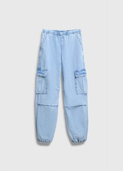 Широкие джинсы с карго-карманами для девочек, Голубой
