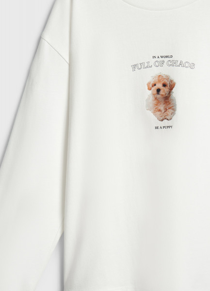 Лонгслив с принтом для девочек, Белый