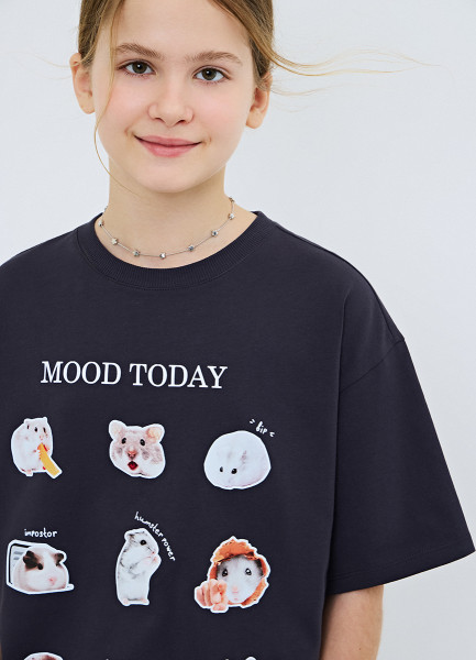 Футболка оверсайз с принтом для девочек, Черный