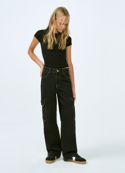 Джинсы с карго-карманами для девочек, Черный