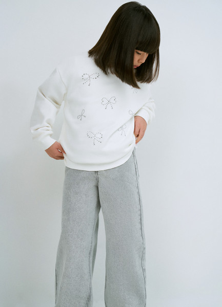 Широкие джинсы для девочек, Серый