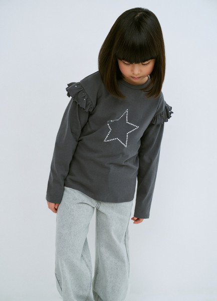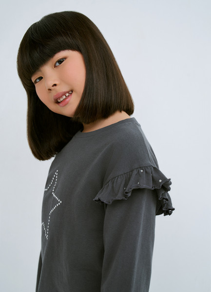 Лонгслив со стразами для девочек, Серый