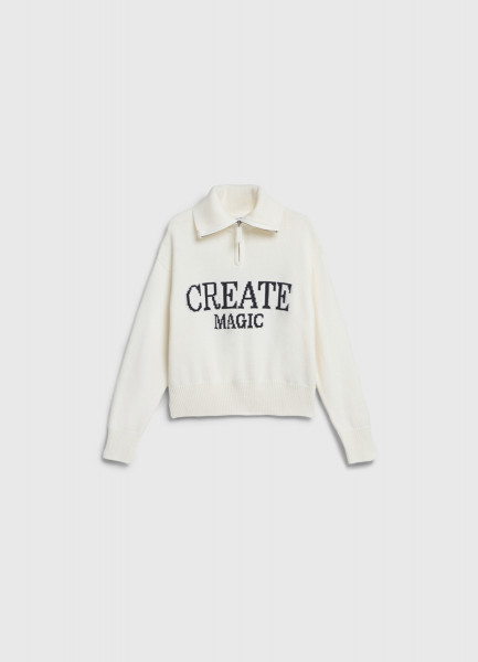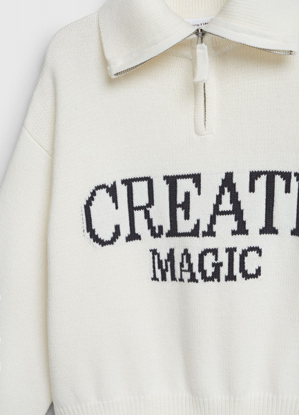 Вязаный джемпер с вышивкой для девочек, Бежевый