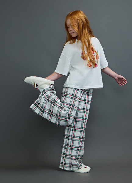 Пижамные брюки в клетку для девочек, Белый