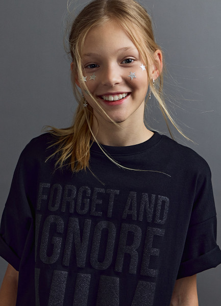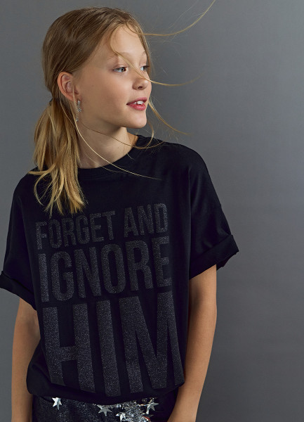 Футболка оверсайз с принтом для девочек, Черный