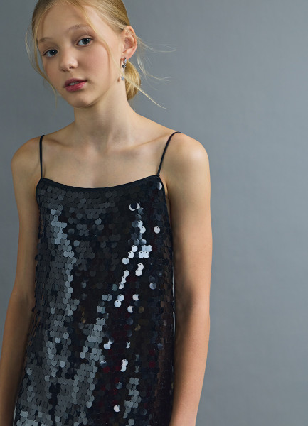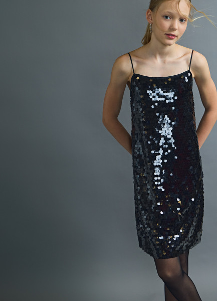 Платье с пайетками для девочек, Черный