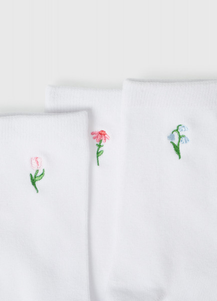 Высокие носки с вышивкой для девочек, 3 пары, Белый