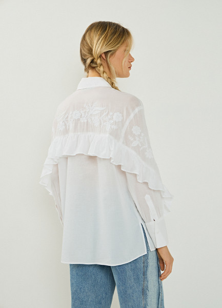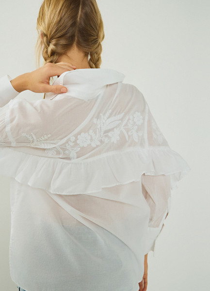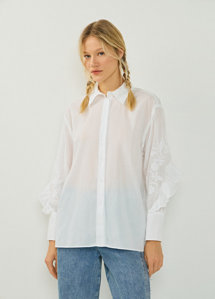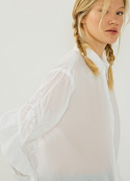 Блузка из вуалевого хлопка с вышивкой, Белый