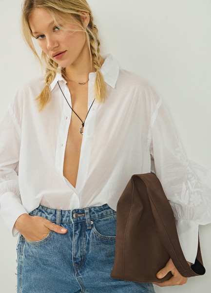 Блузка из вуалевого хлопка с вышивкой, Белый