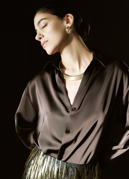 Блузка из вискозы с узлом-завязкой, Бежевый