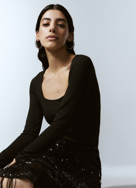 Боди с длинным рукавом, Черный