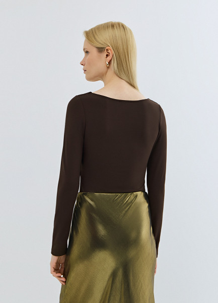 Блузка из вискозы с узлом-завязкой, Бежевый