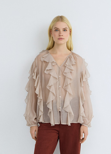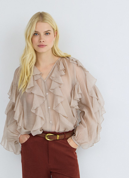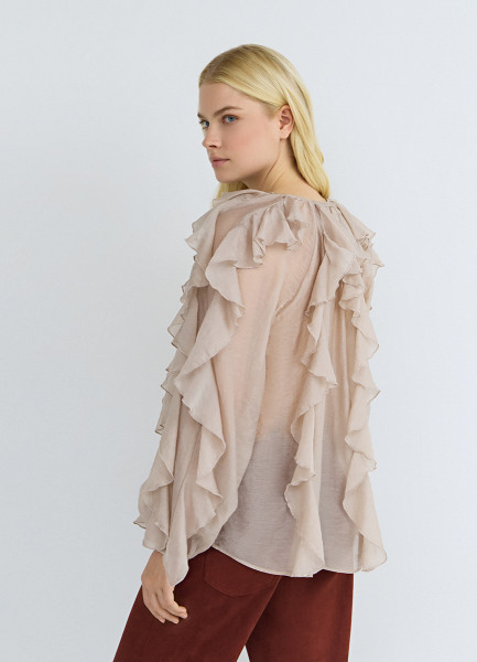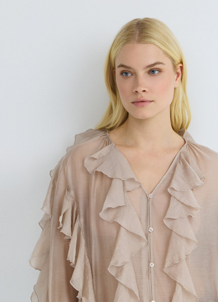 Блузка из лиоцелла с рюшами, Бежевый