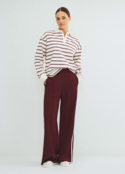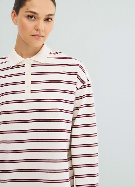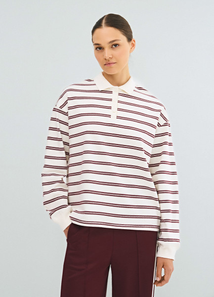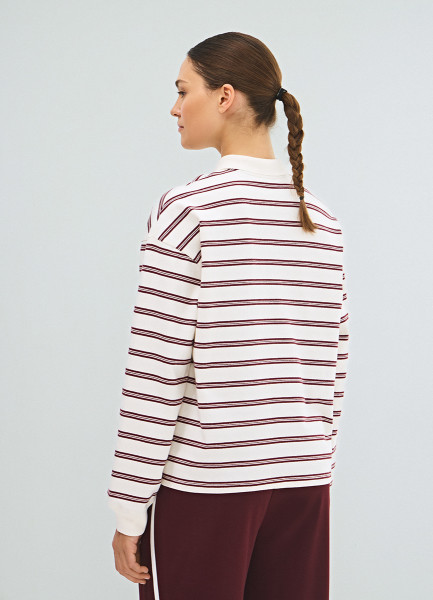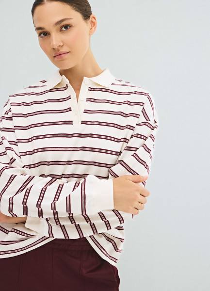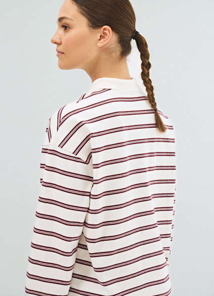 Лонгслив в полоску с воротником поло, Фиолетовый