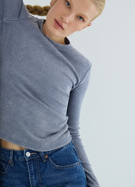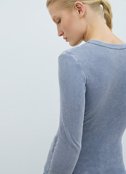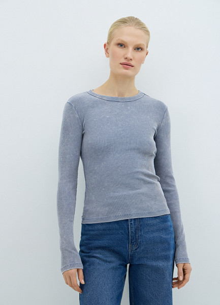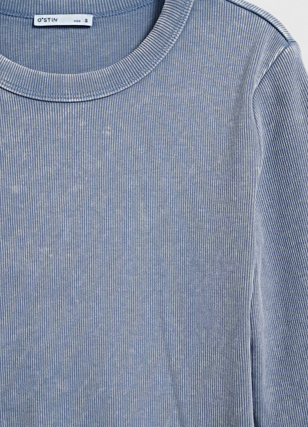 Лонгслив в рубчик, Синий