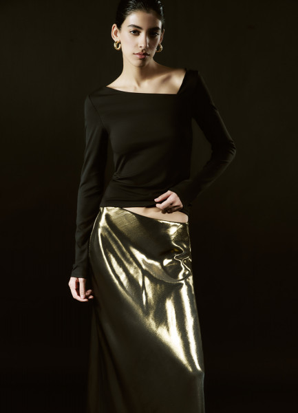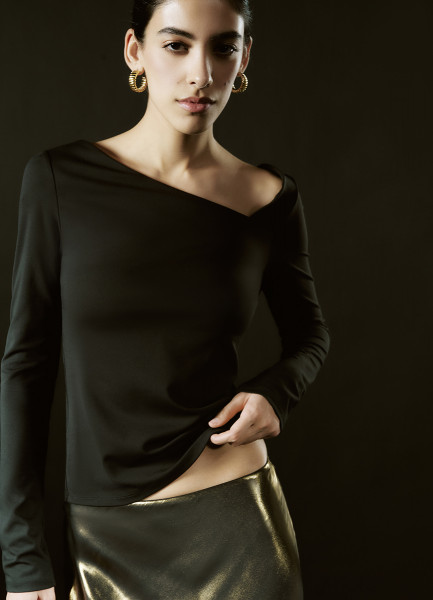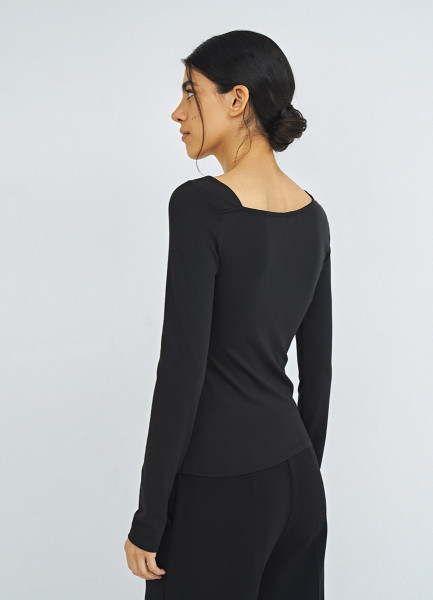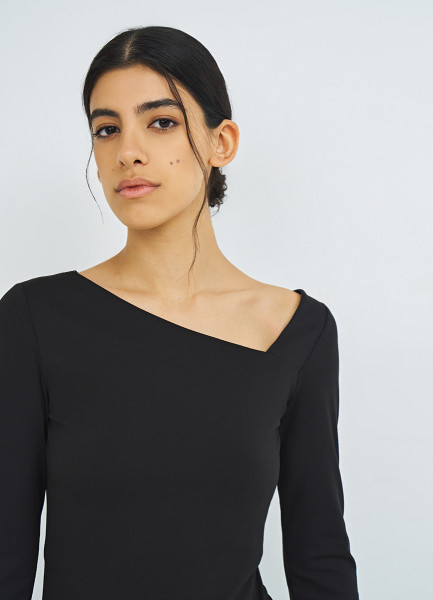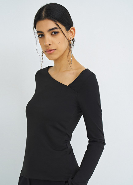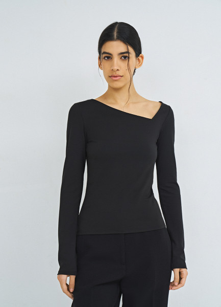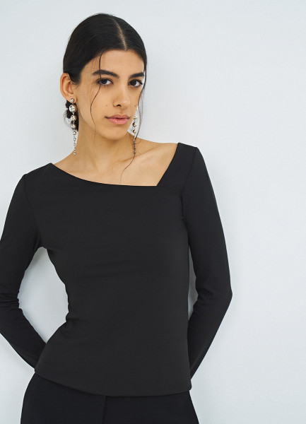 Лонгслив с асимметричным вырезом, Черный