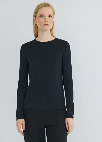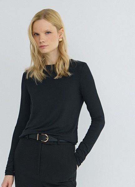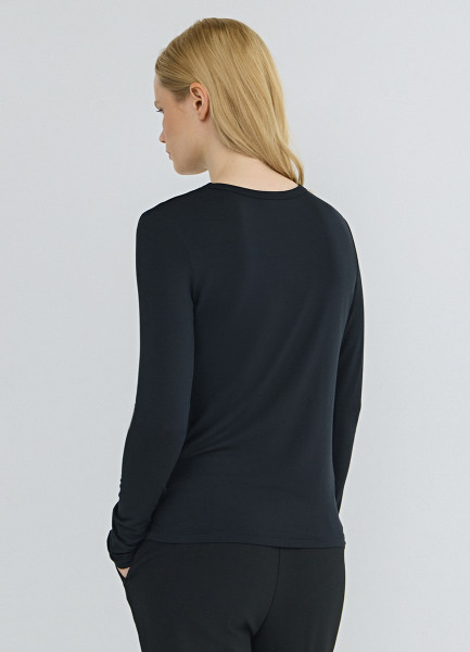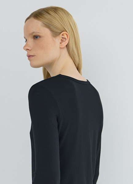 Лонгслив с драпировкой и асимметричным вырезом, Черный