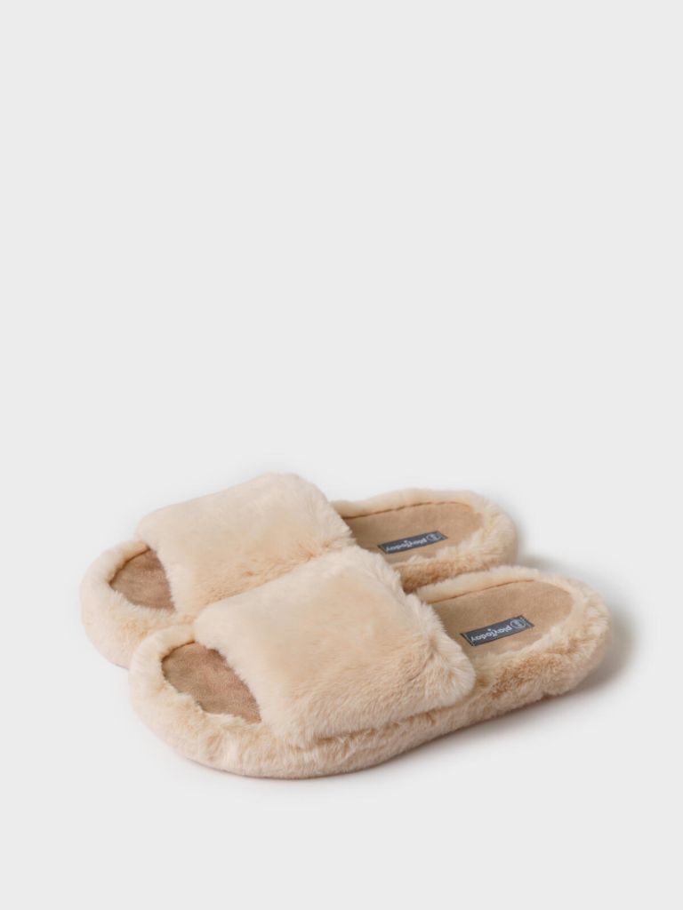 + минималистичные бежевые тапочки из искусственного меха «под норку» — идеально впишутся в любой домашний образ