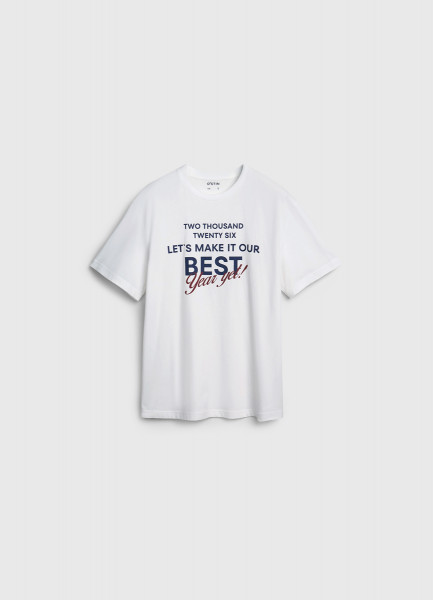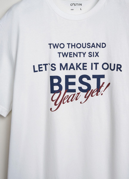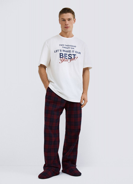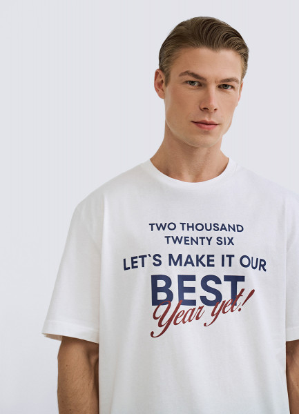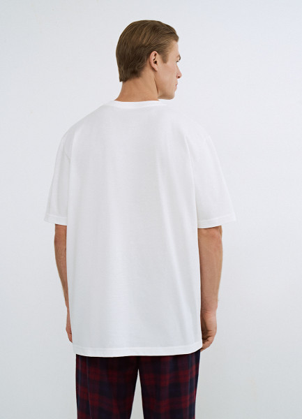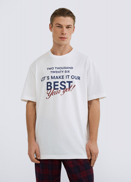 Пижамная футболка с текстовым принтом, Белый