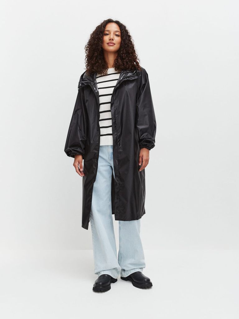 Глубокий капюшон регулируется утяжками. Центральная молния закрыта планкой, все швы проклеены.
