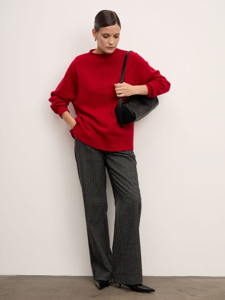 Женский джемпер из натурального кашемира выполнен в насыщенном малиновом оттенке. Модель отличается лаконичным дизайном и мягкой, приятной к телу текстурой. Джемпер хорошо держит форму, обеспечивает комфорт и тепло, подходит как для повседневных, так и для более элегантных образов.